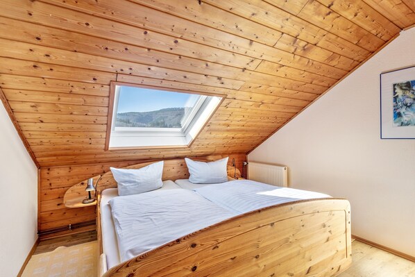The "Erle" apartment at Dümpelhof in Olsberg-Wulmeringhausen offers 41 m² of space for up to 4 guests. Located on the top floor, it features an open-plan living and kitchen area, 2 bedrooms, and 1 bathroom with shower and toilet. Amenities include a fully equipped kitchen, TV, and Wi-Fi. Dogs are welcome upon request and for an additional fee.