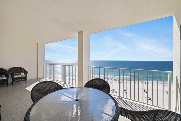 After a day of fun in the sun, retreat to the balcony and take in the sights and sounds of the Gulf. With private access from both the Primary bedroom and living area, you can enjoy sweeping views of the coastline and breathtaking sunsets each evening. Windward Pointe 1205 also offers free wireless internet and a full-sized washer and dryer for added convenience during your stay.