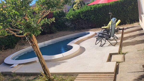Ja, deze accommodatie heeft een buitenzwembad.