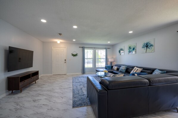 Forget your worries in this spacious 5-bedroom and 2.5 bathroom vacation rental. It will be your home base for your family vacation in the Orlando area. Entertaining is a breeze in the open concept living room, kitchen, dinette and family room. All bedrooms are upstairs.