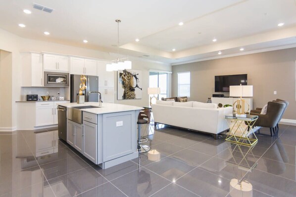 Fully equipped kitchen with stainless steel appliances