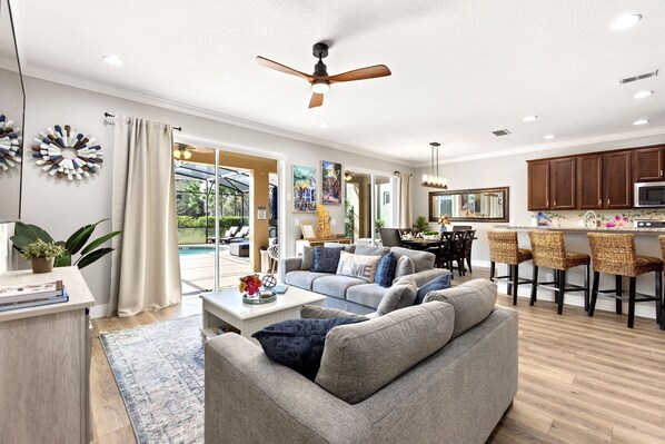 The house is amazing. Pictures don’t do it justice. Attention was paid to every detail down to jewels on the wall. Excellent for families with small kids (stroller, highchair, baby bed) all included. This was a trip where we did not go to Disney but my kids did not even think about it, there was so much fun and entertainment just in the house. Every amenity was provided (laundry detergent, dryer sheets), 2 silverware sets, beach towel for the pool. We did not use the club area because it was cold outside but it looks like it will be alot of fun in warmer months. Our host was available for any questions quickly. The check in and check out process was seamless. The neighborhood felt very safe.