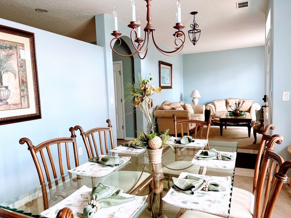 When it's time to eat, the chef of the family can enjoy the fully equipped kitchen. You'll find everything to make a perfect meal, whether it's just sandwiches or if you're cooking up a full meal for 8. Sit down at the dining room table when it's ready to eat! Or keep it casual and eat at the breakfast bar or on the lanai.