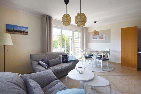 Cozy first floor apartment with south-facing terrace, WLAN, washing machine, max. 4 p.