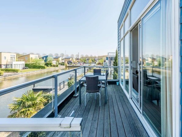 Cette maison insulaire indépendante avec salon au premier étage et chambres au rez-de-chaussée a un intérieur très complet. Zuidvlije 73 est adapté pour 6 personnes et comprend 3 chambres, 1 salle de bain, des toilettes séparées et une cuisine avec une cuisinière à gaz à 4 feux, un four à micro-ondes combiné, un réfrigérateur avec compartiment congélateur, une cafetière à dosettes, un lave-vaisselle et une bouilloire. Le salon lumineux au premier étage dispose d'un coin salon confortable, d'un coin repas, d'une télévision (télévision interactive de KPN) et vous donne accès à la spacieuse terrasse sur le toit avec des escaliers menant au jardin. La salle de bain a une douche et un lavabo. Les chambres sont réparties comme suit : 2 chambres au rez-de-chaussée avec lits superposés, 1 chambre au rez-de-chaussée avec lit double. Le service de fabrication de lit peut être réservé ! Depuis le grand jardin, vous avez une vue sur l'eau. Une largeur d'amarrage de 12 mètres, une prise de quai pour charger les batteries du bateau, un parking sur place, un stockage intérieur, une machine à laver et une connexion Internet gratuite sont disponibles.