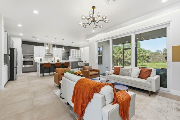 Welcome to our brand-new modern home in sunny Palm Bay, Florida! This spacious 4-bedroom, 2.5 bathroom retreat is perfect for families or groups. Our space offers essentials like WiFi, a fully equipped kitchen, washer/dryer, laundry pods, screened back patio, coffee, a welcome snack basket, and more. Relax in comfort and style with custom led lighting throughout the home for an ambiance feel. While exploring central Florida’s attractions we are in a perfect area out of the city but still close enough to Disney and other attractions. For cruise travelers we are 50 minutes from Port Canaveral. For convenience we are located only 5 minutes away from local amenities, restaurants, and coffee shops. Whether you’re here to unwind or adventure, this is your perfect getaway!