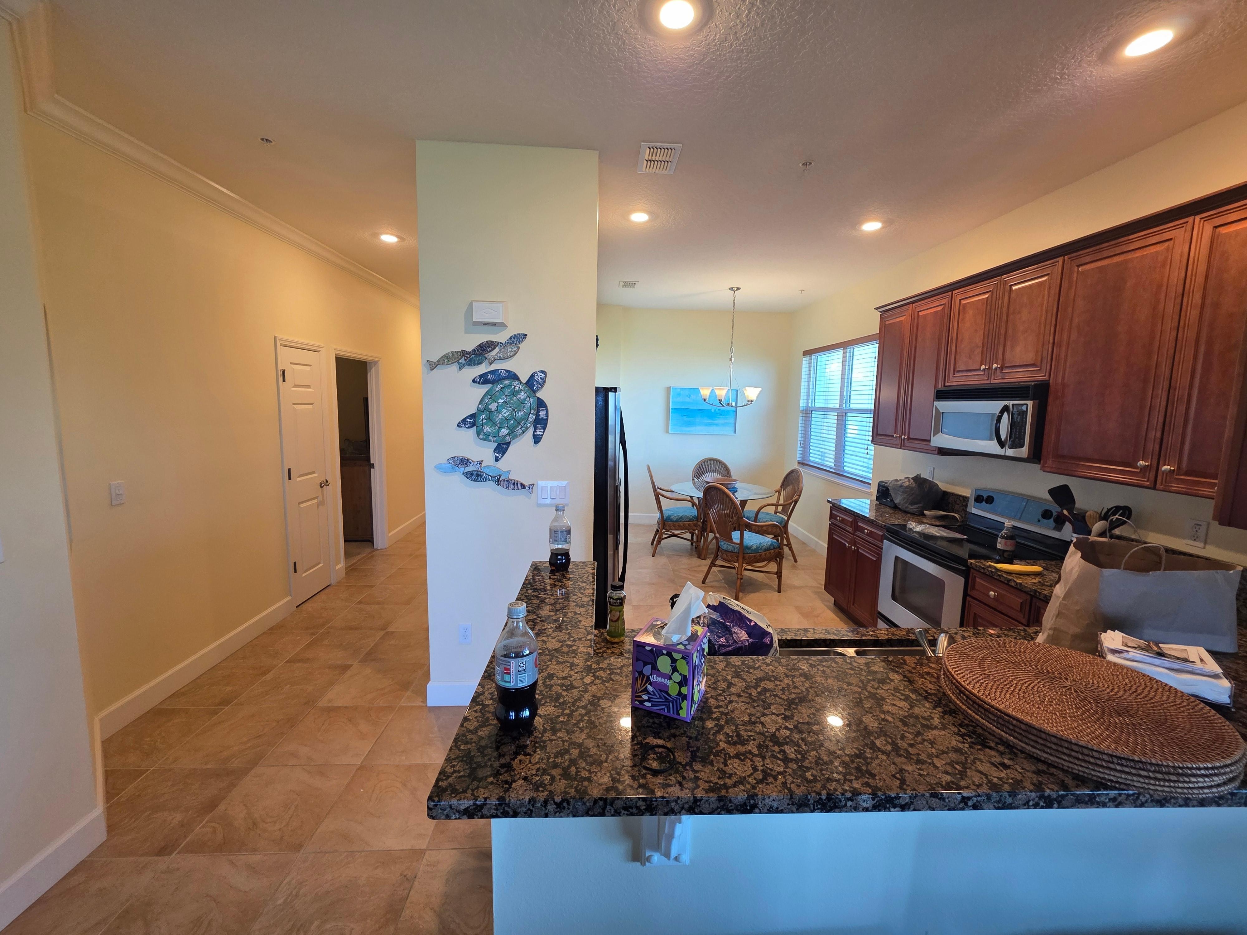 We have stayed in this unit before. Only positives about our stay. Unit is extremely clean. It is spacious, great views of the 8th hole and the ocean. Furniture is upgraded and very comfortable. Everyone (employees and residents )are friendly and courteous . Great place to walk even at night. Beach is only steps away