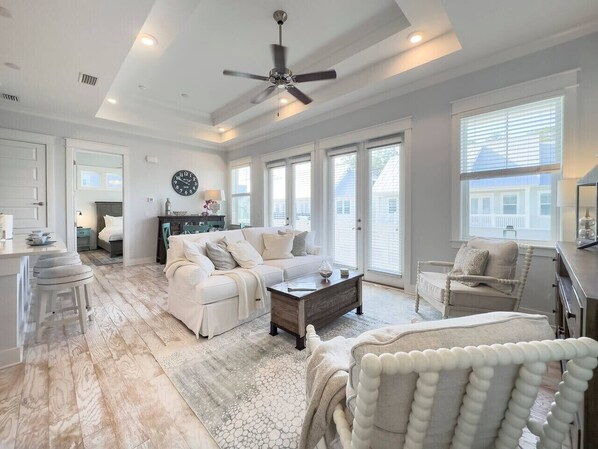 The `Vacay Villa` 2 bedroom/2 bathroom townhome, located in Prominence North on Scenic Highway 30A, provides a private, luxurious escape for guests seeking leisure and sun. The amenities within the property are modern and first rate. The home’s proximity to the brilliant sands and gentle blue waves of the Gulf ensures that beachside serenity is just a couple of minutes away.