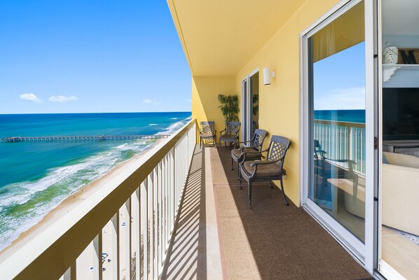 The condo was really nice and as advertised. One big Pro/Con is its proximity to Pier Park. Easy walk to shops and food but this is also a HUGE cruising area so loud cars and music and traffic are an all day thing. Also since it is such a large condo unit there are a ton of people on the beach right in front of the condo. Chair rental guys were super nice and helpful. Overall it’s a great condo. In the future we might look for something a little more low key as it is more our style.