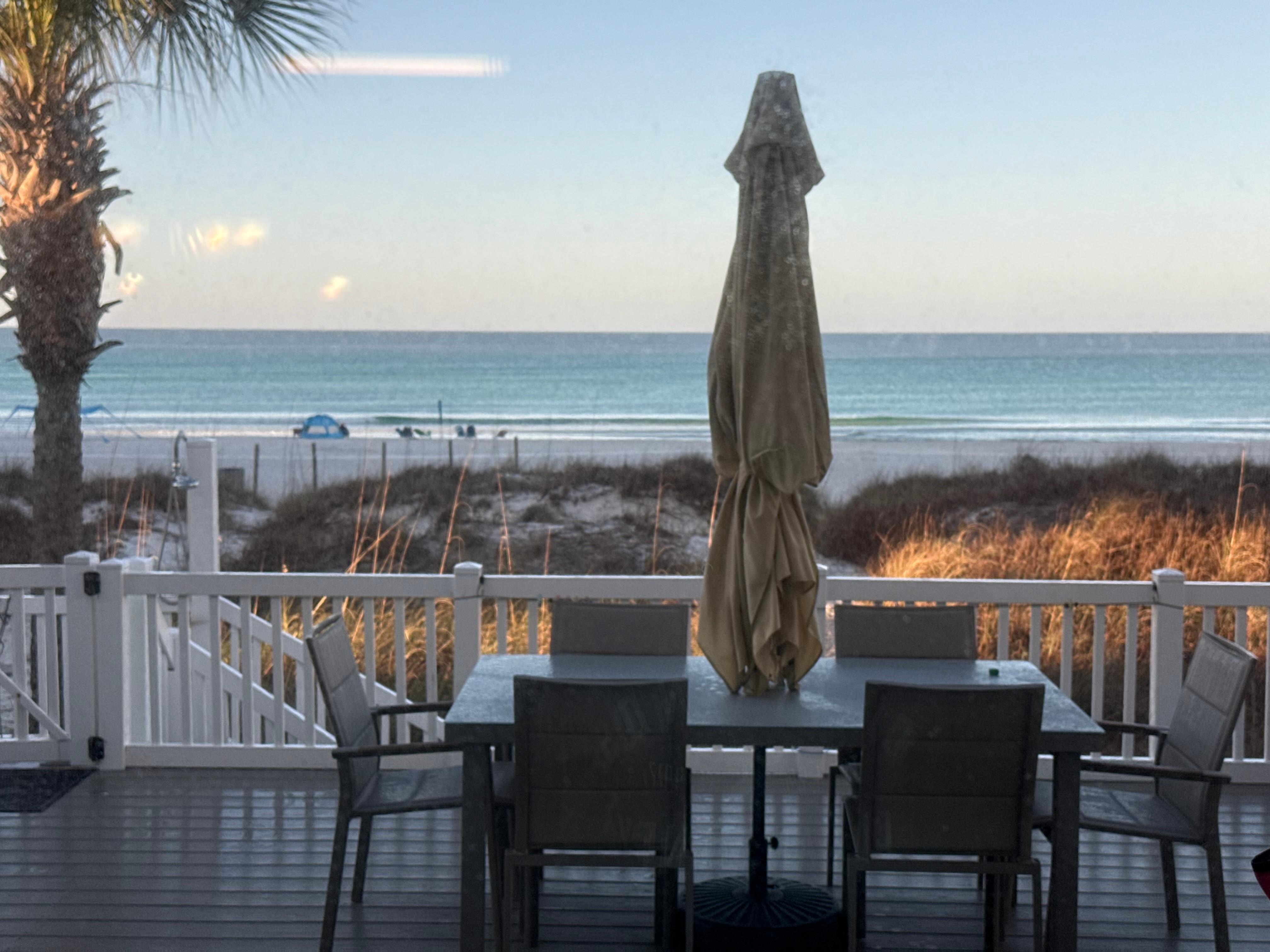 Step into our beach home, furnished in beautiful tropical decor where the view of the beach will take your breath away. Plus our open floor plan & 10 ft ceilings allow for a panoramic vista of the 'world's most beautiful beach from every square foot of our first floor. The newly renovated kitchen boasts stainless steel appliances, a gas range & quartz countertops. The dining room table seats 8 with additional seating for 4 at the bar. We provide both colorful fiesta ware dishes for that special celebration and melamine if you would rather be beach casual. It is a fully equipped kitchen for those whose relaxation & enjoyment includes cooking.