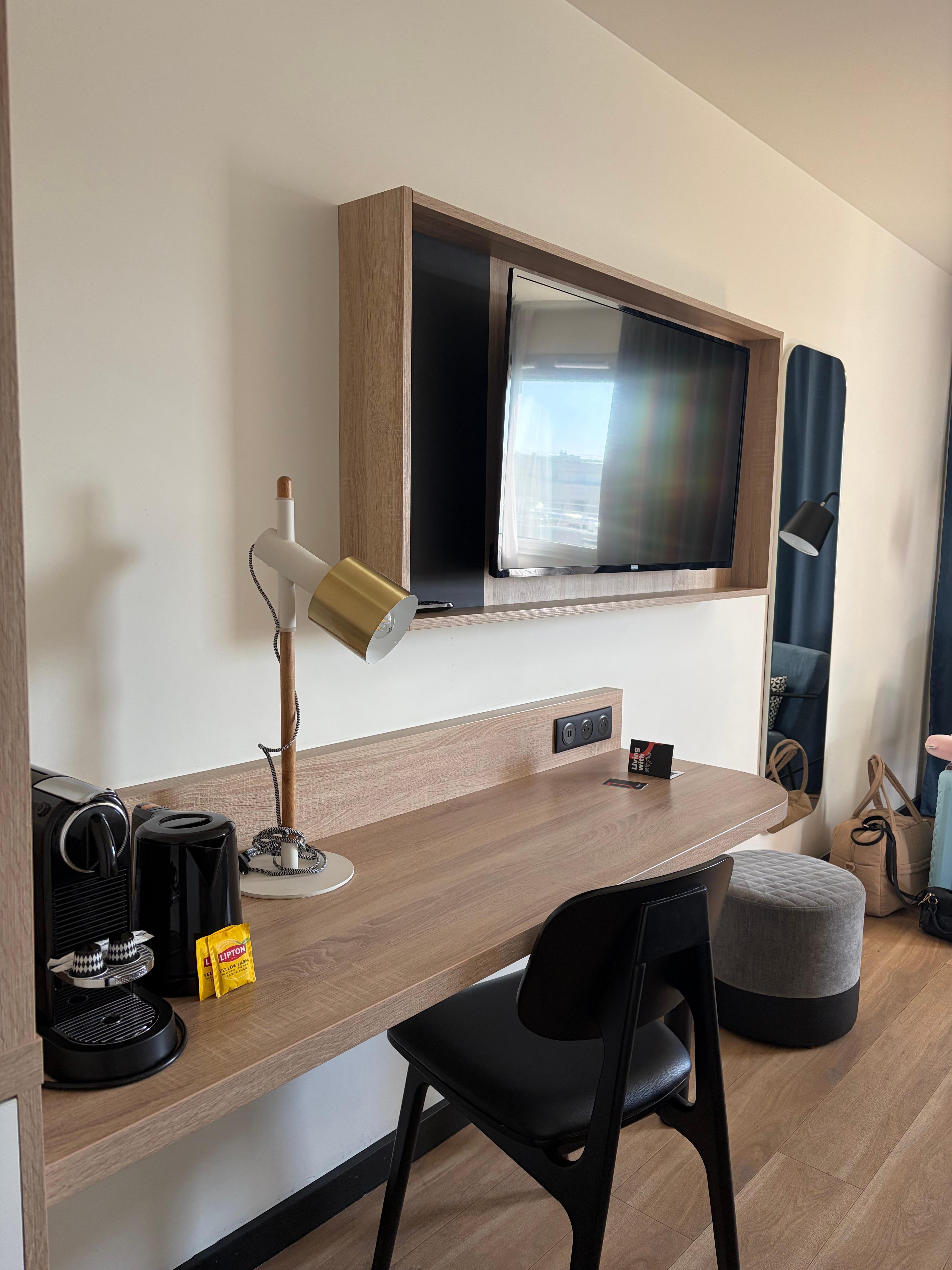 Fijne kamer, leuk gedecoreerd. Fijne omgeving, vriendelijk personeel. Parkeergarage onder het hotel.