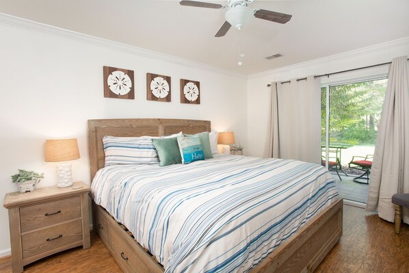 Enter the screened porch from the living room or primary bedroom and relax and take in the South Carolina sunrises with a cup of coffee and sunsets with a glass of wine.