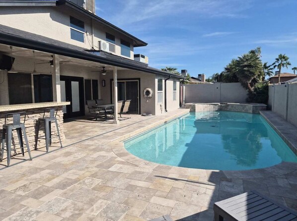 Welcome to the Players Pad, a 4 bedroom 2 bathroom home ideal for anyone who loves group entertainment. Equipped with the space and amenities to gather with friends and chill with your family. A game room with pool table, built-in beer tap, board games, and video games for friendly competition. The backyard awaits with a cool down in the private swimming pool (pool is NOT heated), or get your Grill On at the BBQ gas grill. Located in North Central Scottsdale, local eateries and attractions are mere minutes away, making your stay as convenient as can be. Book your stay at Players Pad, and let the fun begin!