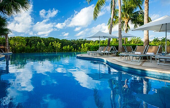 Guests at The Grand Mayan Riviera Maya can luxuriate in beautiful pools spread throughout this gorgeous and lush destination, including Mayan Palace pools.