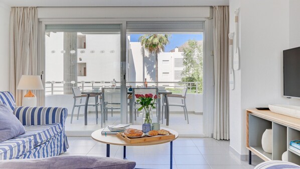 Excellent apartment. We had a problem with the TV due to high winds the night before our stay. Owners dealt with quickly. Excellent location with a quiet pool (outside school hols) and close to the town centre. Pleasant bar/restaurant on site.