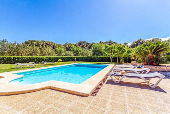 This traditional country house is approached along a colourful oleander-lined drive, with far-reaching mountain views. The villa also gives a traditional country house feel, with the living area featuring beamed ceilings and traditional furnishings.