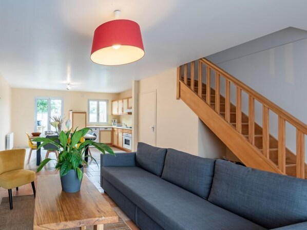 Cosy terraced house "Lana". In the resort, 500 m from the centre, in a quiet position, 300 m from the sea, 300 m from the beach. Private: property 150 m2 (fenced), garden 150 m2, parking (for 2 cars). Restaurant 500 m, bus stop "Mairie" 5 km, sandy beach 300 m. Nearby attractions: Cherbourg 36 km, Coutances 33 km, Mont st michel 110 km, Granville 70 km. Please note: Property ref. FR1931.650.1 is situated on the same property.