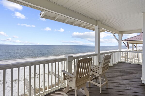 - Second beachfront king bedroom with a 55- inch TV, balcony access.