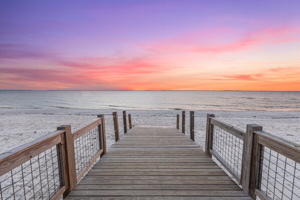 A beach wagon is provided as well as an outdoor shower. Parking is available onsite but be mindful, boats, trailers, and RVs are not allowed. The large community pool offers a zero-entry splash pad for kids, plenty of lounge chairs, as well a playground. In addition, there are several beach access points with 3.5 miles of boardwalks; perfect for exercise such as walking, biking, running, and even nature photography or you can visit the city center which is home to Fit as a Fiddle for yoga and weights. We highly recommend going to The View on 98 in the city center to cook your catch or have a sunset cocktail looking over the ocean. Windmark Beach has all the amenities to provide a memorable vacation.
