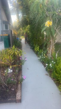 One large bedroom with queen size bed, walk in closet. Beautiful private garden bath tub and shower with a separate sitting room over looking the pool. TV and WIFI access is included.
