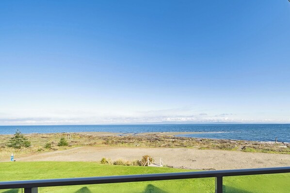 Sur la plage et les pieds dans le sable, cet appartement condo se trouve dans le secteur de Qualicum Beach à 3 km de sites comme : Musée de Qualicum Beach, Qualicum Beach Memorial Golf Club et Parc communautaire de Qualicum Beach. Village Theater (salle de spectacles) et La Boutique de Bonbons Vintage se trouvent également à moins de 3 km de distance.