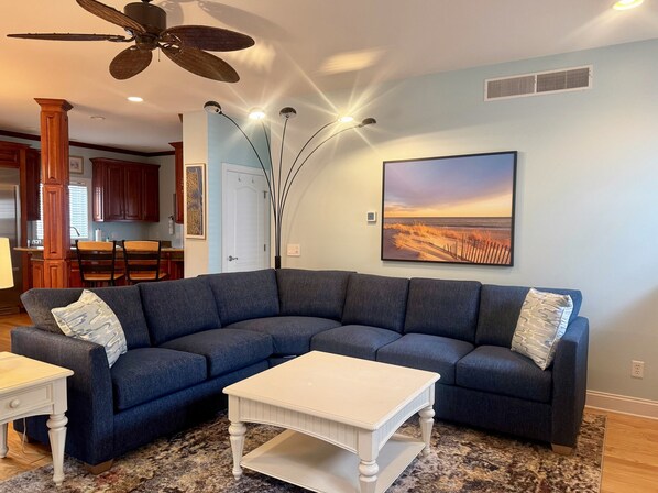 My family of five was very comfortable in this house for our beach vacation. Nice chairs on porch and upper deck balcony. Easy walk to boardwalk and beach. Great kitchen and bathrooms too. Would stay here again.