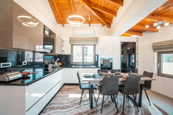Villa Despina, located in Rhodes, offers stunning views of the Aegean Sea. The 100 m² property features a living room with a sofa bed for 2 guests, a well-equipped kitchen, 3 bedrooms, and 1 bathroom, accommodating up to 6 people. Amenities include Wi-Fi, a smart TV with streaming services, air conditioning, and a washing machine.