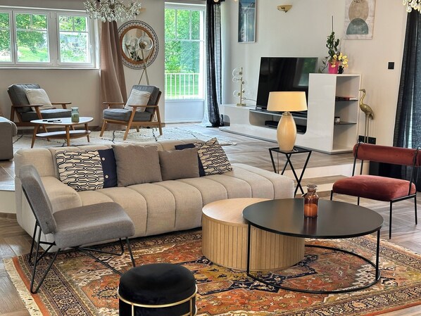 Vous bénéficierez d'un grand salon cocooning , un espace de lecture ou de détente .