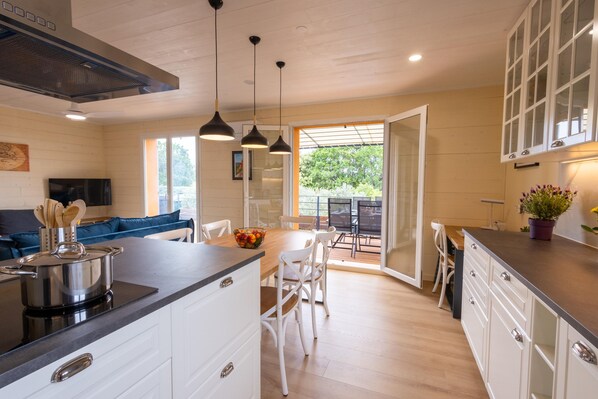 Elke kamer met airconditioning in dit vakantiehuis is voorzien van een privézwembad en een koffiezetapparaat/waterkoker. De keukens beschikken onder meer over een koelkast, een microgolfoven, kookgerei, borden en bestek en een vaatwasser.
