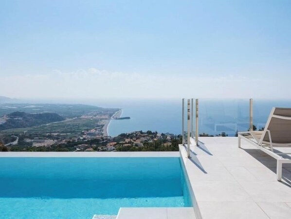 'Villa Golondrina - Luxury villa with spectacular views (sea, beach, castle), heated pool, gym, pool table, tabletennis, outdoor kitchenLuxurious, modern villa with heated infinity pool and breathtaking views of the sea, the beach and the castle of the typical Andalusian village of Salobreña - the gem of the Costa Tropical in Andalusia. The temperatures here are mild all year round, with about 320 days of sunshine a year. In winter, it is the warmest micro-region in mainland Europe. The villa, completed in 2020, is south-facing and enjoys sun all day. It is in a completely quiet location at the end of a residential-only street on the exclusive Monte de los Almendros.You can enjoy the spectacular views from all 4 bedrooms, from the spacious living/dining area with open luxury kitchen and from the two large terraces. All rooms, including the bedrooms, have floor-to-ceiling glass fronts with sliding doors to one of the terraces and electric, room-darkening roller shutters. All bedrooms have fitted closets and en-suite bathrooms with rain showers and windows/patio doors. The bathroom of the master bedroom also has a bathtub. There is also a guest toilet on the pool level and a further shower bathroom in the basement - next to the fitness room with several fitness machines and the games room with a pool table and a bar. All rooms in the villa are air-conditioned with individual controls for each room. The air conditioning system also allows the rooms to be heated. Wifi with high-speed Internet and various TV channels are available. On the pool terrace you will find an outdoor kitchen and an outdoor shower with hot water, below there are two further garden levels. Behind the electric gate to the villa there is sufficient parking space for 2 vehicles and more parking space can be found on the street .Nearby, there are tennis and paddle tennis courts, an 18-hole golf course, attractive hiking trails and various beaches with restaurants, cafes, bars, water sport offerings, etc. Several stretches of the local coastline are attractive for snorkeling and diving. For shopping, several large supermarkets are available in Salobreña as well as other stores. There are various sights in the region, including the world-famous Alhambra, just 73 km away. In winter you can reach the Sierra Nevada ski area in one hour and 15 minutes at an altitude of between 2100 and 3300 meters with 85 km of slopes and 20 lifts/gondolas (Dec. to April). Ski during the day and relax in the pool at mild temperatures in the evening. The airports of Malaga, Granada and Almería are within easy reach. ....' BEDROOMS AND BATHROOMS· Bedrooms 1 and 2 on upper floor: Two single beds each, fitted closets, en-suite bathrooms with glass doors to the upper terrace· Bedroom 3 on upper floor: Glass fronts on two sides, double bed, separate anteroom with fitted closet, en-suite bathroom with double washbasin and window· Bedroom on pool level: Glass fronts on two sides, two single beds, en-suite bathroom with shower, bathtub, double washbasin and window· Further shower and toilet in the basement· Guest toilet at pool levelSWIMMING POOL· Infinity pool 10 x 3.5 meters· Pool heating (extra cost of € 180 / week)· Automatic pool cover· Comfortable pool steps· Outdoor shower with hot and cold water· Pool lighting with selectable colors BUILDING FEATURES AND INTERIOR FURNISHINGS· Completion 2020, built floor area 396m²· Large pool terrace and further terrace on upper floor, 250m² combined· Two garden levels below pool terrace· Air conditioning in all rooms (cooling and heating), individual control panel per room· All rooms with floor-to-ceiling glazing, electric shutters, sliding doors and terrace access· Wifi with high-speed internet· Fully equipped, open kitchen with 2 large fridges, freezer, stove, oven, built-in microwave, dishwasher, built-in coffee machine, coffee machine, kettle, toaster, blender· Kitchen island with 4 seats (bar stools) · Large dining table· TV (Smart TV with various channels, Netflix can be used with your own account)· Fitness room with multifunctional fitness machine, treadmill, ergometer, weight bench and large mirror· Games room with pool table, dart board, bar and large couch· Washing machine and tumble dryer· Iron and ironing board· Hair dryerEXTERIOR FEATURES· Very quiet location (no traffic, only residents)· Exterior lighting incl. color-changing LED effect lighting along the facade to pool (control panel in the living room; also controls effect lighting in the kitchen)· Outdoor kitchen with built-in gas grill, fridge, sink, counters and base cabinet· Additional mobile barbecue (gas)· Sun protection through ceiling overhangs and 4 electric awnings on the pool level· Dining table and lounge furniture· Sun loungers· Table tennis table· Electric sliding gate, parking space for 2 vehicles on the property and space for more on the street in front of the villaSERVICESIncluded· Electricity, water and all other utilities· W-LAN· Butane gas bottles for barbecue· Gardener and pool maintenance· Initial and final cleaning· Bed linen (initial set)· Towels· Personal reception· Cribs and high chairs for babies on prior request Optional services (must be requested in advance)· Shopping service (35 € + food costs)· Transfer to / from the airport (from 130 €, depending on group size)· Pool heating (surcharge 180 € / week)· Additional cleaning of the house (15 € / hour plus VAT), minimum 4 hours LOCATIONLocal· 3 km to the office of Grandes Villas· 5 km to the old town of Salobreña, several supermarkets, other stores, restaurants, cafes, etc.· 5 km to the castle of Salobreña· 10 km to Los Moriscos Golf Club· 11 km to the port of Motril (boat rental)· 16 km to the water park Aqua Tropic Beaches· 5 km to the beach of La Guardia· 6 km to the main beach of Salobreña (Playa de la Charca)· 12 km to Playa Granada· 13 km to Almuñécar beach Day trips· 33 km to Nerja Ca