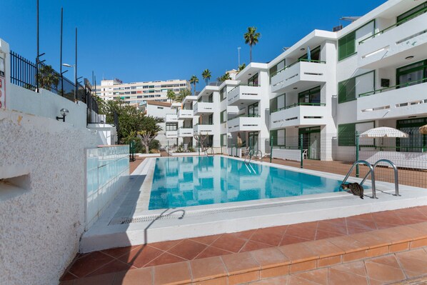 The holiday apartment Apartamento Yumbo Centro in Maspalomas is the perfect accommodation for an stress-free holiday with your loved ones. The property consists of a living room with a sofa bed for 2 people, a kitchen, 1 bedroom and 1 bathroom as well as an additional toilet and can therefore accommodate 4 people. Additional amenities include high-speed Wi-Fi (suitable for video calls), a TV, a fan as well as a washing machine. This accommodation does not offer: air conditioning. This vacation rental features a shared outdoor space with a shared pool, garden and balcony. Perfect for relaxing and enjoying the sunny weather.