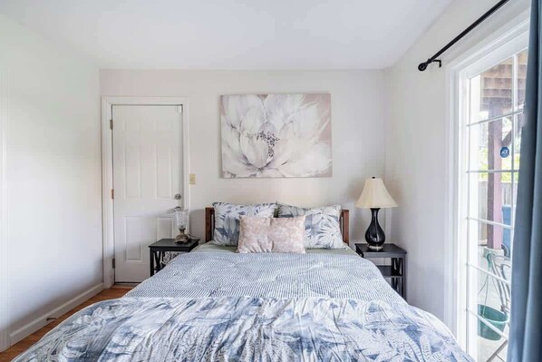 • One bedroom with a queen bed (sleeps 2)