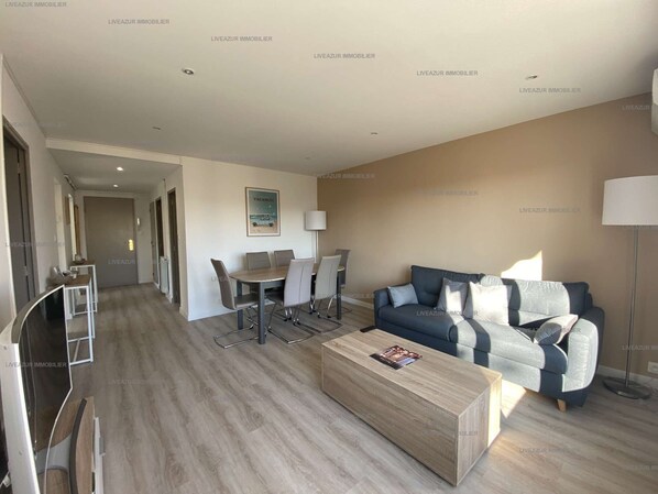 The apartment consists of an entrance hall, a living/dining room opening onto the terrace and a very well equipped independent kitchen.
