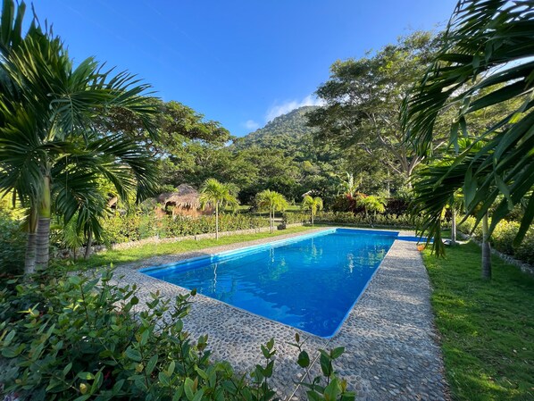 Pension aan de rivier met een buitenzwembad en een restaurant