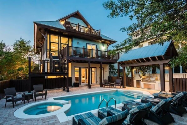 Our family with 8 adults and one baby has a great week together, but I have mixed feelings on this particular property. The good: The location is absolutely amazing! A short walk to a very private beach. It was luxurious! The layout of the house was perfect for our family. With four couples each having their own full and private bathroom, we all felt so grateful! The inside of the house was clean and beautiful, decorated well, and had wonderful updates. The bad: We had several problems throughout the week. The smoke alarm went off for the first 2 nights which significantly disrupted our sleep and resulted in exhausted, disjointed daytimes as well. The daytime service line was very responsive, helpful, and even refunded us a little bit for the inconvenience. However we could not get ahold of anyone on the nighttime “emergency” service phone line either night. We also had trouble with a burned out outlet on the grill and a broken ice maker in the freezer. The outside of the property, particularly the screened in porch was very dirty. There was food and cigarette butts and it had not been properly cleaned. The pool area and outdoor area could use “freshening up” and a good power clean as well. Overall: We love 30A and will visit again!