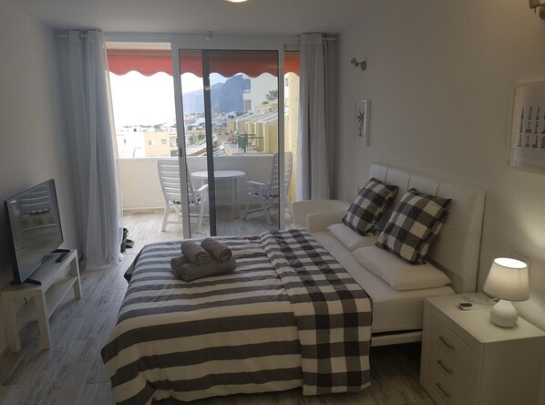 Fantastic studio for two in the complex Playa del Sol, just 150 meters from the beach of Playa de la Arena (the famous beach with black volcanic sand). From the terrace of the apartment you can have breakfast or dinner while enjoying the view of the ocean, the cliffs of Los Gigantes, the romantic sunset, and just enjoy the sunshine that shines all year round. The complex has its own pool only for residents of the complex. All amenities are around: bars, restaurants, supermarkets, shops, taxis. I'm sure you will like it!