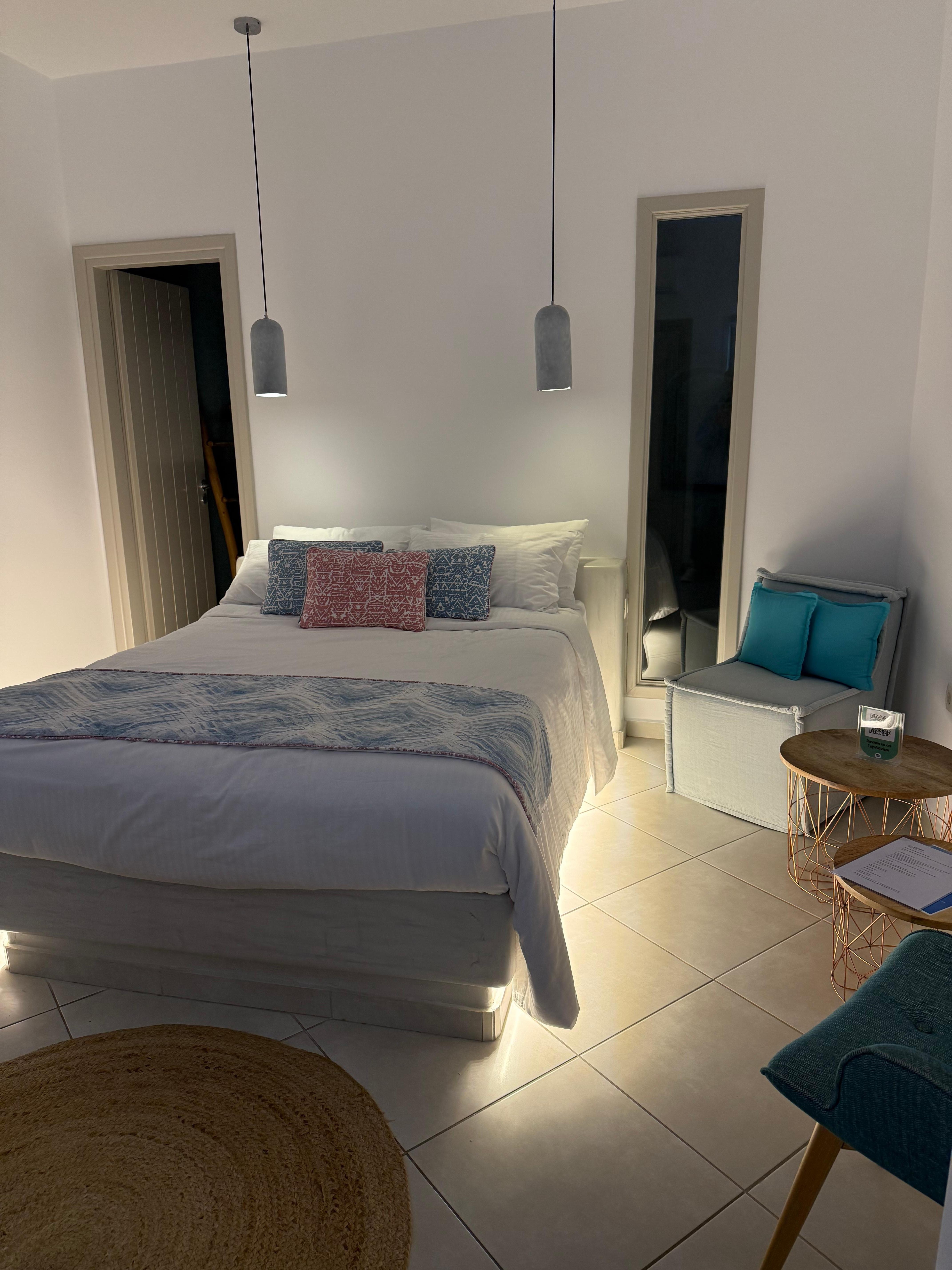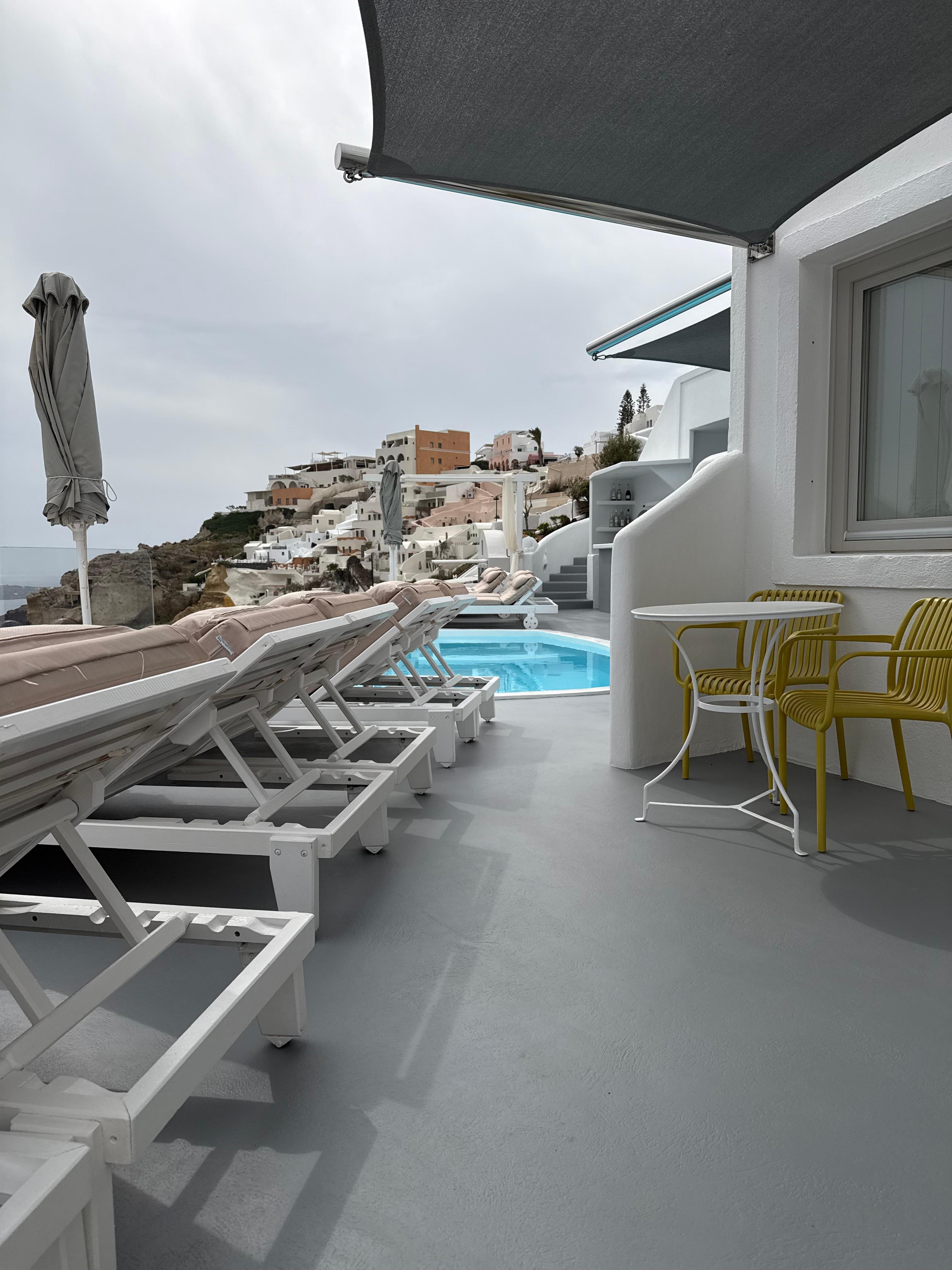 Such a charming room! The breakfast served to you is amazing! The staff, Xeno and Aries make you feel at home and more than anything want you to enjoy your vacation/holiday!! The views are absolutely breathtaking and I would have been just happy sitting on a lounge chair all day! This is definitely the place to book in Oia!