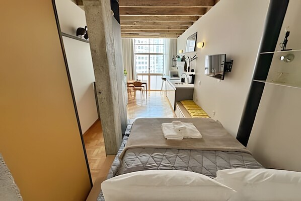 Stay in São Paulo's most famous residential building and enjoy your stay close to the city's main tourist attractions, its best bars and restaurants, and cultural excursions. A studio apartment that surprises with its design, optimizing the use of space to provide a complete apartment structure in just a few meters.