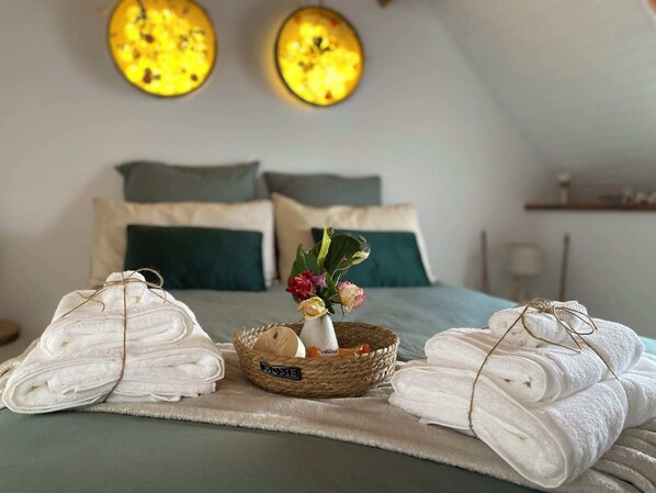 Venez vous détendre au cœur d’une nature luxuriante dans les gites Romeline - Baie du Mont Saint Michel.Bénéficiez d'un logement complet trés cosy et confortable de 2 pièces, aménagé dans une belle longère divisée en 4 logements de 2 personnes et tourné vers la détente et le bien-être. Espaces verts, bois, étangs.Linge et produits de première nécessité de qualité fournis. Accès jacuzzi et massages sur réservation (tarifs sur demande)Le logementNous vous proposons un appartement cosy plein de charme rénové et aménagé dans une grande longère de 4 logements 1-2 personnes exclusivement, accolés à l’ancienne chaumière des propriétaires et entourée par 3,5 hectares de verdure bucolique à souhait, 🌳🌸,🏡Le logement: 👩🍳Une cuisine équipée récente🛌Une belle chambre cosy et chaleureuse avec un lit queen size de qualité, linge de lit et 5 oreillers🛋️Un beau séjour/salon 🚿Une salle de douche avec wc🪑🍽️Un petit balcon avec table et chaise et une superbe vue sur le jardin 🧴🧻 Linge de lit et de toilette de qualité fournis.Nous sommes aux petits soins et ferons le maximum pour que votre séjour soit reposant et inoubliable! 😊Nous vivons dans un cadre préservé d’une grande beauté.offrez-vous un séjour déconnecté au calme de cette magnifique nature avec de magnifiques levers et couchers du soleil aux couleurs flamboyantes!Ici c’est le chant des oiseaux qui vous réveillera!;-)Accès aux parties communes: 🌺 jardin des poètes pour pouvoir se détendre sur les transats 😎😴 et réaliser des barbecues l’été, 🌳le petit bois et les étangs offrent une jolie balade romantique et ressourçante(prévoir chaussures adaptées par mauvais temps, c’est souvent humide). 🅿️Parking gratuit sur place.➡️ Services proposés en option sur place 😇 (tarifs et réservation sur demande):🧘♀️ Jacuzzi: La séance d'1 heure est au prix de 10€ que ce soit pour 1 ou pour 2 personnes ou au forfait semaine (tarifs sur demande). Réservation au moins 48h à l'avance selon disponibilité. Jacuzzi ouvert dès 10h, dernière séance 21h30.‼️Jacuzzi fermé le dimanche après-midi. 🪷Massages (hôte diplômée de l’Ecole Harmonie Bien-être, infos , tarifs et réservation sur demande aux gites Romeline)Attention: Nous n'imposons pas le forfait Ménage d'office dans notre prix, le logement doit être restitué propre mais un forfait ménage est toutefois possible au prix de 25€ payable sur place. Nous vous remercions de nous en informer en amont afin que nous nous organisions.Si le logement n'est pas restitué propre, nous nous réservons le droit de facturer le forfait ménage.➡️A découvrir autour: 🌊 le Mont Saint Michel et sa baie, Granville, Le Havre de la Vanlée, les falaises de Champeaux ⛱️plages: Genets, Carolles, Jullouville, dragey-Ronthon, Kairon-plage, Dinard 🔔Villedieu les poêles et la fonderie de cloche, 🏝️les îles Chausey, 🏰Fougères, le Rocher Portail (nouvelle école de sorcier) Saint Malo, Dinan, Cancale… 🥾nombreux chemins de Randonnées, le sentier des douaniers 🚣Nombreuses activités de bord de mer, pêche à pied, traversée de la baie avec guide… 🦐🧀🍾🐄Découvrez notre riche terroir! En bref, venez vivre une expérience ressourçante et reposante dans les hébergements Romeline où détente et bien-être sont au cœur de nos préoccupations!Accès des voyageursLeur appartement et tous les espaces verts sauf le jardin des propriétairesLa taxe de séjour: est calculée après la confirmation de réservation et sera prélevée:- soit sur la carte ayant servie à validée la réservation en même temps que le dernier versement de 25%,- soit via un lien de paiement qui vous sera adressée,- soit sur place par chèque ou espèces en fonction de la date de réservation.Son montant est calculable sur le site https://taxe.3douest.com/avranches.phpIl vous sera dans tous les cas confirmé par mail une fois votre réservation validée.Réglement: Le logement doit être restitué nettoyé et en ordre, tel qu'il vous a été remis, le lave-vaisselle et les poubelles doivent être vidés ainsi que le seau à compost qui doit être vidé et nettoyé.Le domaine est un lieu de détente et de ressourcement réservés aux adultes où sont pratiqués des massages bien-être, aussi le calme des lieux doit être respecté, et plus spécialement entre 22h30 et 9h00 du matin pour le repos de chacun.A noter:Télétravail possible, la fibre est enfin arrivée :-). Le wifi est désormais performant.