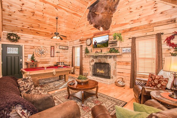 Serendipity est une cabine de luxe joliment et méticuleusement décorée, dotée de tous les équipements nécessaires à la création de vacances parfaites! Cette cabine de luxe est équipée d'une table de billard, d'un jeu d'arcade GRATUIT pour les plus de 60 ans avec des jeux classiques tels que Pac-Man, Space Invaders, Frogger, Centipede, etc., PlayStation 2, Internet sans fil haut débit, des chaînes du câble Premium, un tableau assorti jeux, terrasse privée avec bain à remous privé où vous pourrez profiter de la magnifique vue sur les montagnes, jacuzzi romantique, télévisions à écran plat, sans oublier le confortable foyer au bois!