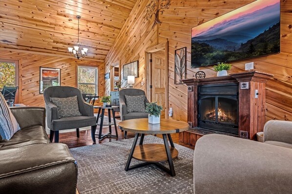 Escape to Smoky Mountain Sanctuary, located just minutes from the excitement of Pigeon Forge and Gatlinburg. This luxurious cabin features a full arcade and a brand-new game room with a pool table, and small movie room. Begin your mornings with freshly brewed coffee from our luxury coffee bar, unwind in our hot tub, or gather around the fire pit under the stars. The front porch offers a peaceful retreat, ideal for a rejuvenating for your adventure-filled stay.