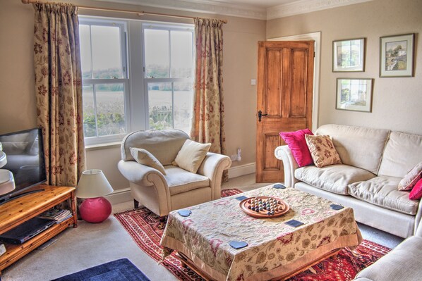 La cuisine et la salle à manger sont à aire ouverte et sont un grand espace sociable. La cuisine en bois sur mesure construite à la main a été décrite comme un rêve de cuisiniers avec un équipement de bonne qualité et un Aga électrique pour que la maison soit toujours chaleureuse et confortable. Cela peut être refusé les jours chauds. Dans cette salle, il y a un piano et une guitare avec partitions, livres, magazines, radio, station I POD et WiFi. Le salon dispose d'une télévision avec chaînes satellite «gratuites», de magazines, de livres, de jeux et d'un poêle à bois. Vous aurez même le chauffage central, le double vitrage, l'eau courante chaude et froide, l'électricité, un fer à repasser et un sèche-cheveux.