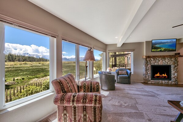 Prime location: overlooks meadow, The Sierra Nevada mountains, and Trout Creek, walk or drive 1 mile to Lakeview Commons public beach and free outdoor summer concerts, less than 1 mile to local restaurants/coffee shop/activity rental stores, 3 miles to Stateline casinos, 3 miles to Heavenly Village shops/restaurants and gondola to skiing, 3.8 miles to Heavenly Mountain Resort, 18 miles to Sierra-at-Tahoe, 35 miles to Kirkwood for more skiing/snowboarding options