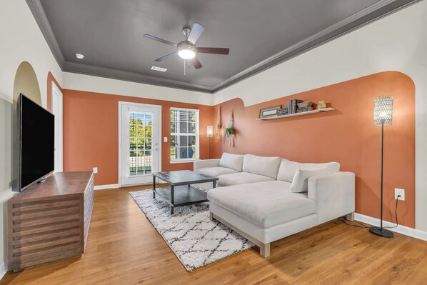 Experience comfort and convenience in this spacious 2-bedroom apartment, perfect for long-term stays. Designed with modern touches and 9’ ceilings, this home features 2 plush king beds, TV in the master and a 65” 4K TV in the living room. The fully stocked kitchen and dining for 6 make cooking and entertaining effortless.