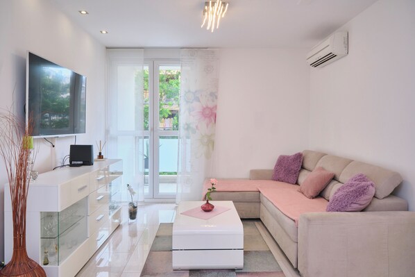 Dit appartement in Split is voorzien van een keuken en een balkon