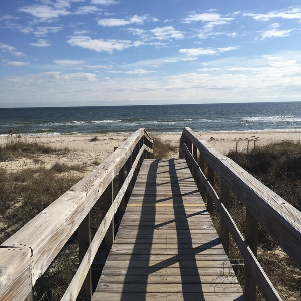 Tout est dans le nom. C'est un condo de 3 chambres et 2 salles de bain situé directement en face de la plage. Les immenses fenêtres offrent l'une des meilleures vues sur l'île. Cette unité a été récemment rénovée et propose un hébergement haut de gamme avec un prix familial. L'appareil est adapté pour les chiens, les frais d'animaux domestiques dépendent du type de chien. Chacune des chambres dispose d'un ventilateur de plafond pour garder la belle brise de mer en mouvement. Le loft dispose de deux lits simples. Le porche comprend des rockers confortables, de sorte que vous pourrez siroter du vin et regarder le soleil tomber. Le salon a des plafonds de 16 pieds, avec de grandes fenêtres donnant sur le magnifique golfe du Mexique. La piscine étincelante a un pont couvert et des grilles de charbon de bois Weber pour griller après une longue journée à la plage ou au tourisme.