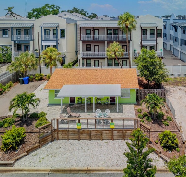 • Front and back paved patios with outdoor seating