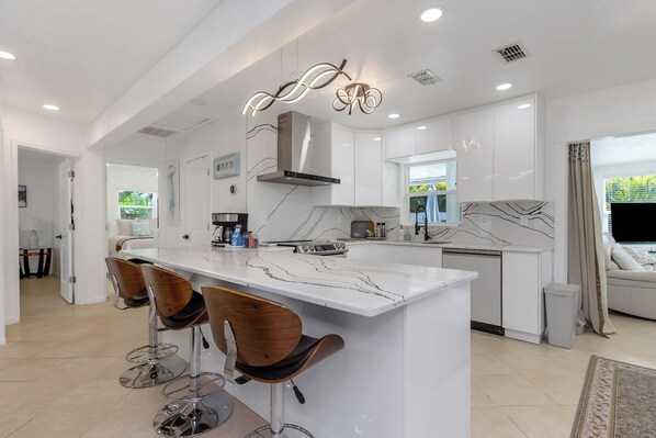 This beautifully remodeled 2-bedroom, 1-bathroom home offers the perfect balance of modern comfort and tropical relaxation. Situated just 5 minutes from the beach, the open-concept layout features sleek finishes, a cozy pull-out sofa, and an air mattress to accommodate extra guests. Whether you’re here for a weekend getaway or a longer stay, you’ll enjoy a fully equipped kitchen and all the amenities you need for a stress-free vacation.