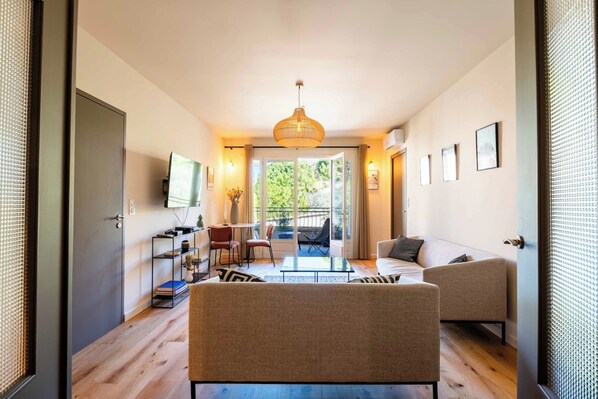 Appartement pour 4 personnes comprenant 2 chambres et 2 salles de bains attenante avec un salon et une cuisine toute équipée d’une surface de 90m²Venez découvrir notre magnifique appartement rénové avec soin. Ce logement de 90m² dispose d'un confortable salon de 20m² donnant accès une loggia de 6m². Une cuisine indépendante et toute équipée vous permettra de profiter de bons moments en famille ou entre amis autour d'une belle table en bois et de siège confortable. 2 chambres sont ensuite disponible dans cet appartement. Chaque chambre dispose de sa propre salle de bain et WC. De nombreux rangements sont présents dans chaque pièce et chaque chambre dispose de son dressing. L'appartement est entièrement climatisé. Une chaise haute ainsi qu'un lit parapluie sont disponible à la demande et gratuitement