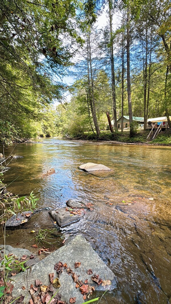 Allez pêcher, nager, faire de la randonnée, faire du canoë, griller, lire, ou simplement s'asseoir sur le porche et prendre le son de la rivière et les oiseaux. Vous vous sentirez rafraîchi et détendu en appréciant le pays de Dieu.